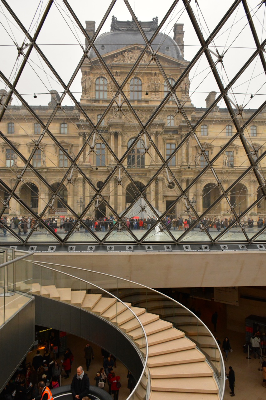 Friday, last day. The two Paris biggies remained to be conquered. Could we do both the Mona Lisa and the Eiffel Tower in one day? We felt that one could not go to Paris and not pay our respects to Mona. The trouble was that during this holiday week, there had been 2 hour queues to get into the Louvre. However, thanks to Rick, who gave us the tip about the sneaky side entrance to the Louvre, we conquered Louvre in 37 minutes from arrival outside, queuing, through security, ticket purchase, battling crowds to get to and at the Mona Lisa, checking out IM Pei’s pyramid and exiting out to the still waiting hordes. Fifth queue strategy…. Sneaky Side Entrance. Check!