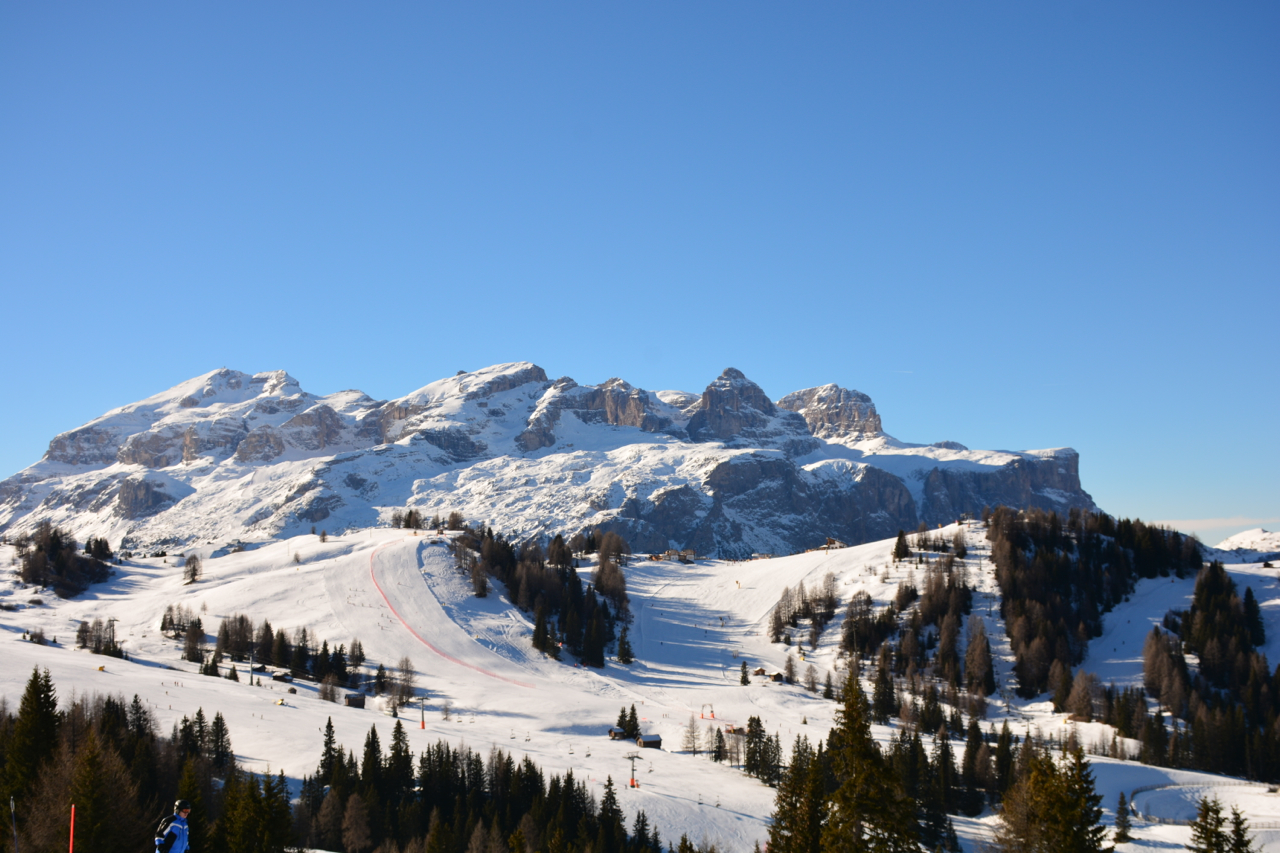 The journey from the airport to San Cassiano wound through the Dolomites, climbing up mountain roads, going higher and higher over each pass. The snow began to fall, the roads got narrower and Heidi, our driver, spent more and more time on the mobile. It turns out she was finding out which of the high mountain passes were passable, and finally after a few calls, she settled in on a safe way over the mountains. Luckily she was a San Cassiano local and seemed very confident on the snowy and icy roads.