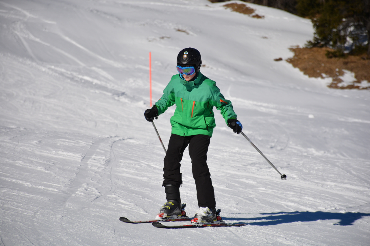 Two hours later, Alex returned to the meeting point with two confident, happy and uninjured kids who now could ski. The day ended with a ski home, down the long run all the way back to the village.