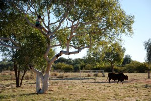 We camped at Barkly Homestead, the only rest stop before you turn left at Three Ways. We ran about, swam, learned to tie knots, checked out the plane Matt used to fly and climbed trees – all in about 1 hour before ordering tea at the roadhouse.