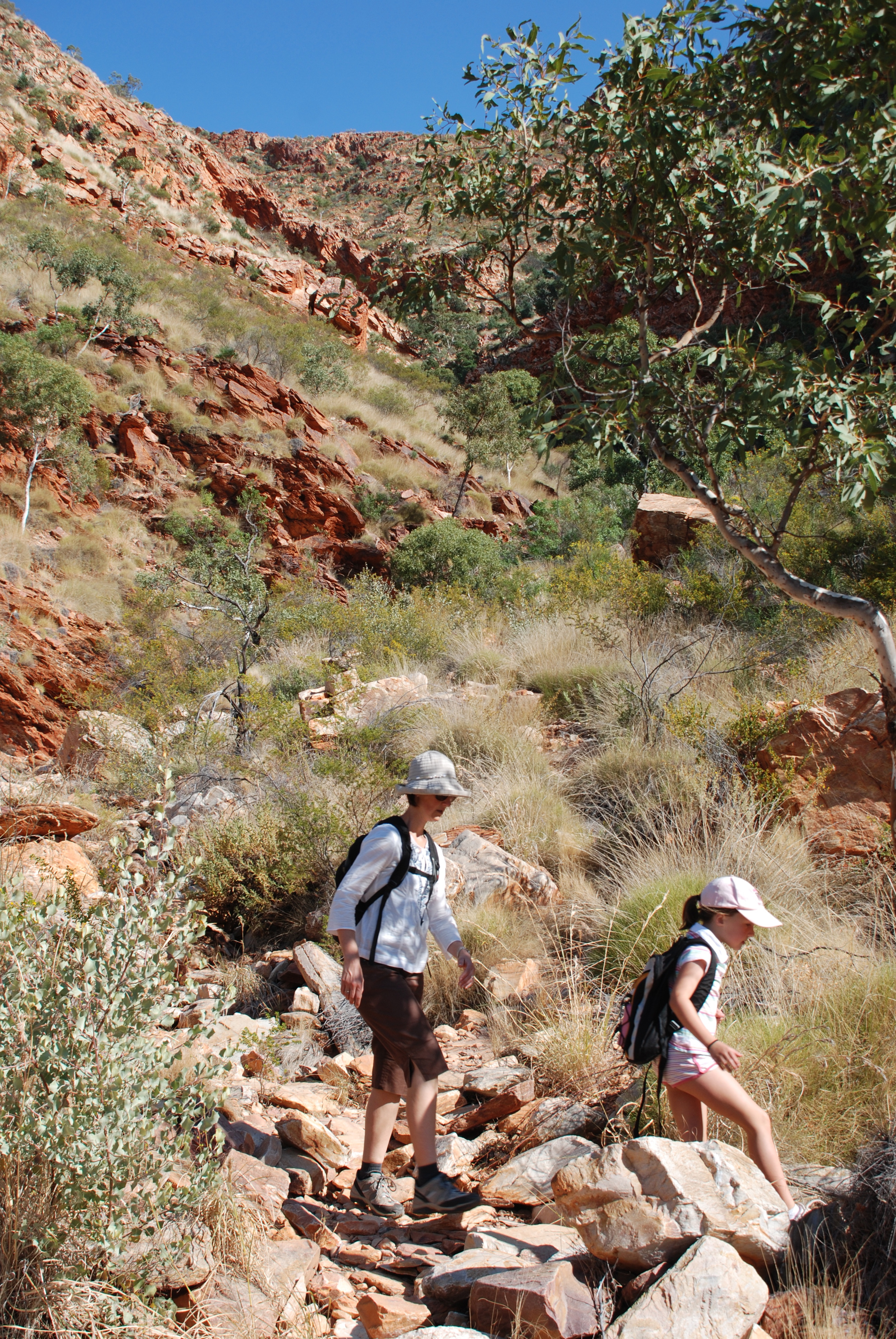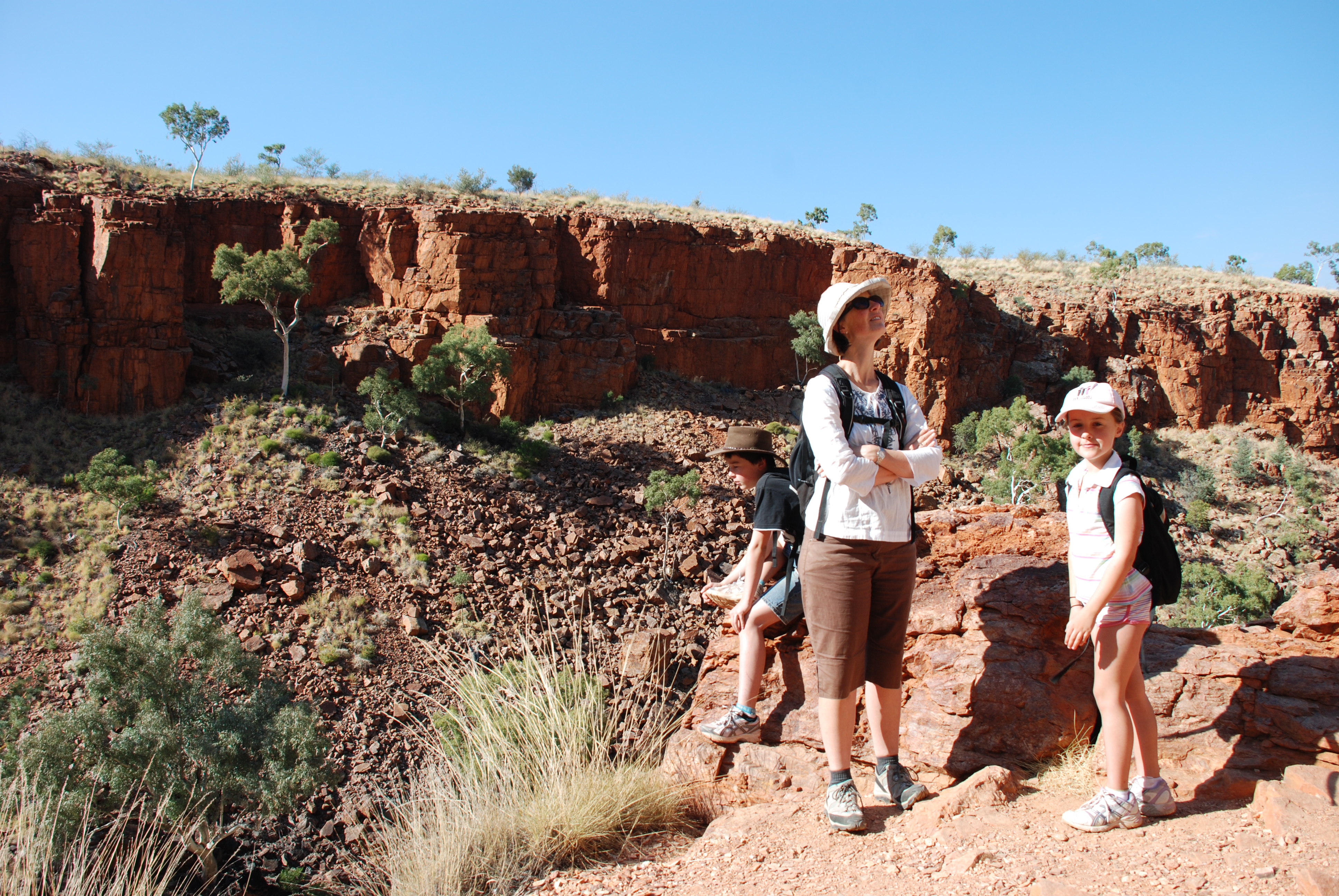 At last some real earth upheaval at Ormiston Gorge. 340 million years ago something big created a rock sandwich and some spectacular walking tracks. We even know that the gorge is made of Quartzite (igneous possibly???) and the lovely layering effect created by limestone, dolomite and mudstone.