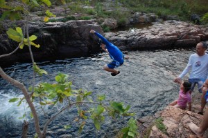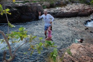 At the Rockhole we were all mainly jumping off rocks but Tom and I were also sliding down the waterfalls and climbing back up them while Mum and John were in a bigger pool taking their chillpills. Dad, Ali, Georgie, James and Ele were following Tom and I.