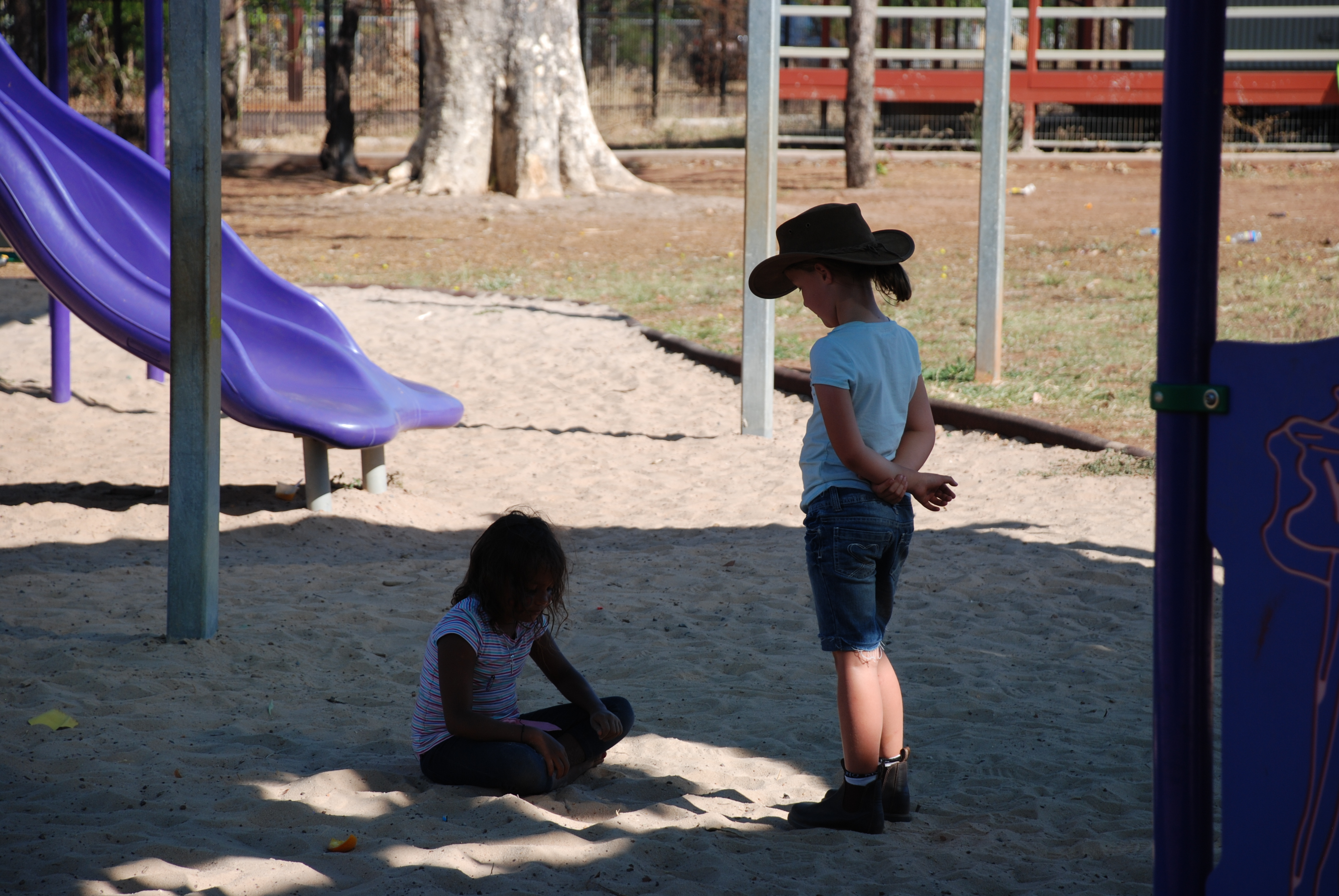 We made our way back through the heat haze to the oval, and watched the end of the AFL final that was being played there. St John’s College Darwin defeated the others – not sure who was playing in the Blue and White. Slowly the players and their supporters made their way back to the Gunbalanya Primary School for the presentation and I was very keen to have a little peek into a very different school environment. It was well resourced, with a huge COLA and plenty of heat defeating strategies, though it was hard to see into the rooms as a result.