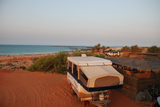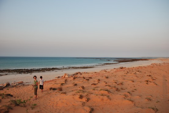 At Cape Leveque, we were directed onto the far side of the cape, to the thatched beach shelters, where we set up Jake, declared school holidays and embraced the sea air.