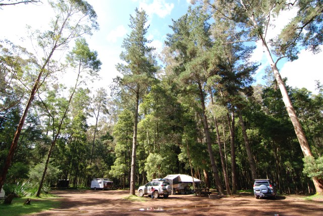 One benefit we discovered was the beautiful camping to be had amongst the trees. .  Staying at Arboretum, near Pemberton’s Big Brook Dam we enjoyed the natural beauty at the other “bookend” to, say, Cape Range.  It was a delight to sit around the campfire in the forest and soak up the forest vibe. Arboretum was an experiment by WA forestry back in the 20’s and 30’s where exotic forest trees were planted to see how they would grow in the Pemberton area. Mixed among the Karris were some impressive Sequoia trees, famed in California’s forests.