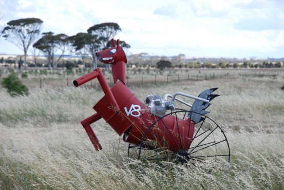 It all started when we arrived in Kulin, about 100ks away from Wave Rock. We got out of the car to stock up on supplies (lollies & gum) when, in the middle of the conversation, the shopkeeper suggested we take the “Tin Horse Highway” instead of taking the “Grey Concrete Highway”. So off we went down the T.H.H.