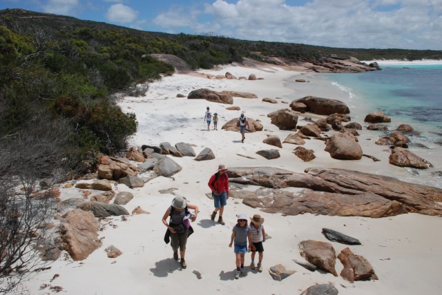 A stunning 15km coastal walk links Le Grand Beach, Hellfire Bay, Thistle Cove, Lucky Bay and finally to Rossiter.  The track traverses the granite domes, along the white sand beaches and through wildflowers, surely making this one of Australia’s best coastal walks. We tackled Thistle Cove to Hellfire Bay, the two beaches between our campsite at Le Grand Beach and Lucky Bay.