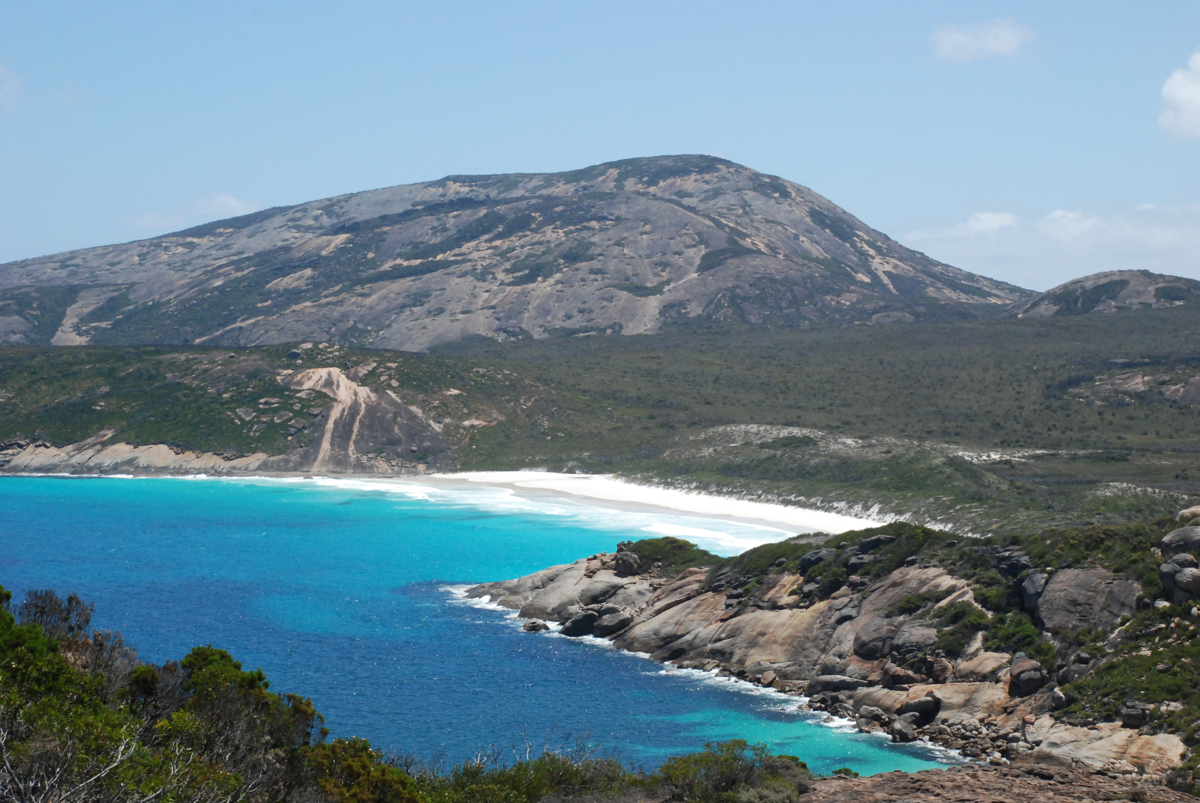 I like the name Cape Le Grand. The domed granite peaks provide a backdrop to the incredibly aqua waters and white beaches. It’s  a genuinely grand setting. Suits its name perfect. The French admiral D’Entrecastreaux explored this area in his ships Esperance and Recherche. He named the cape after one of his officers aboard. It sits within Archipelago of the Recherche and, you guessed it, near the town of Esperance.