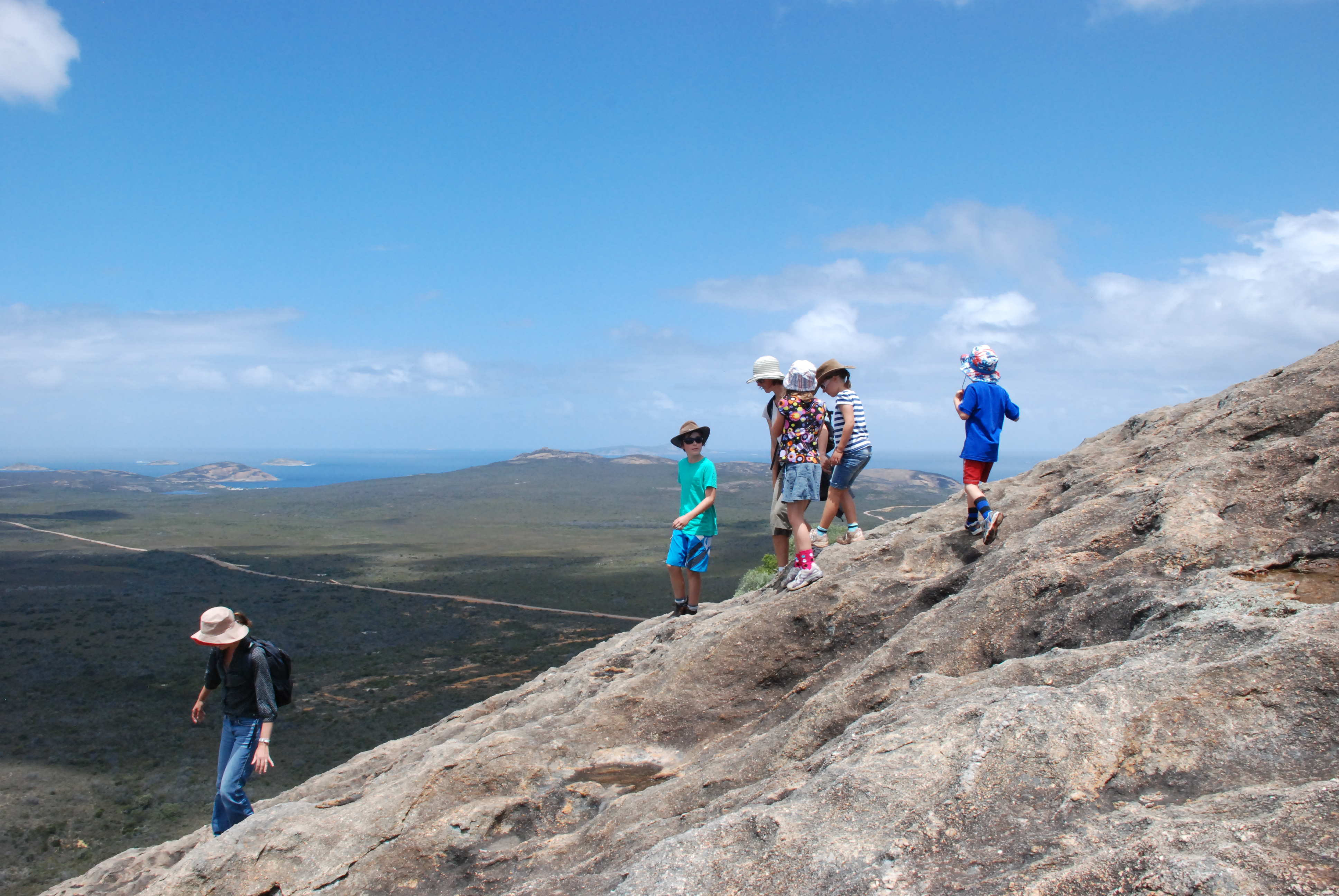 Near the summit was a large cavern, a window to the archipelago stretching from one side of the mountain to the other. We sheltered while the kids played peek hole hide and seek around the cavern.