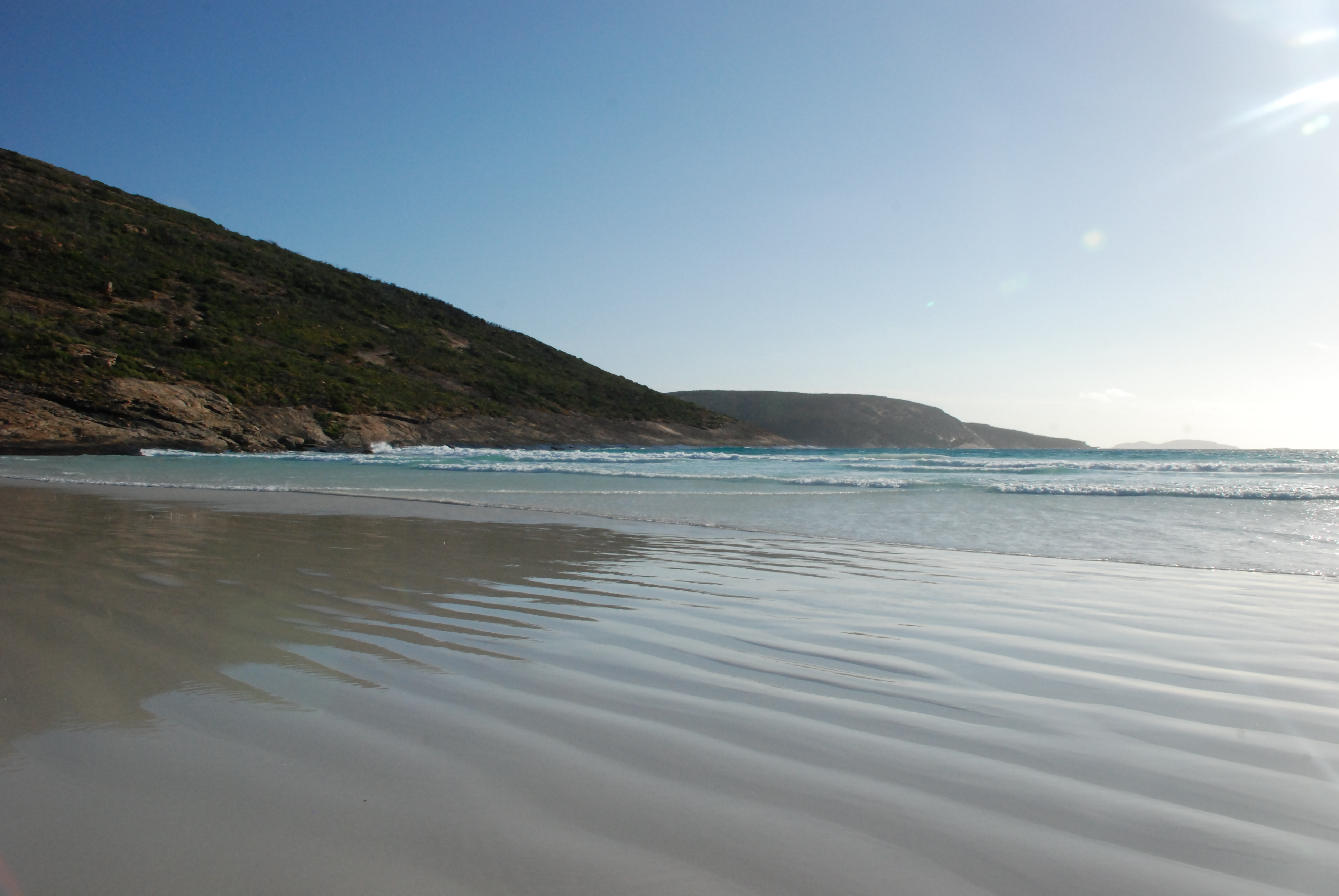 An afternoon chilling out at Lucky Bay was the reward after the ascent of Frenchman Peak. Lucky Bay is famed for its white sand. The sand was uniquely squeaky underfoot, super fine and very white.WA claims the whitest sand in Australia is here. But these claims are also made in Tassie about Freycinet Peninsula…. and in NSW at Hyams Beach.  I think we need a federal grant to continue our arduous journey to do some scientific research at each of these beaches to determine the winner!