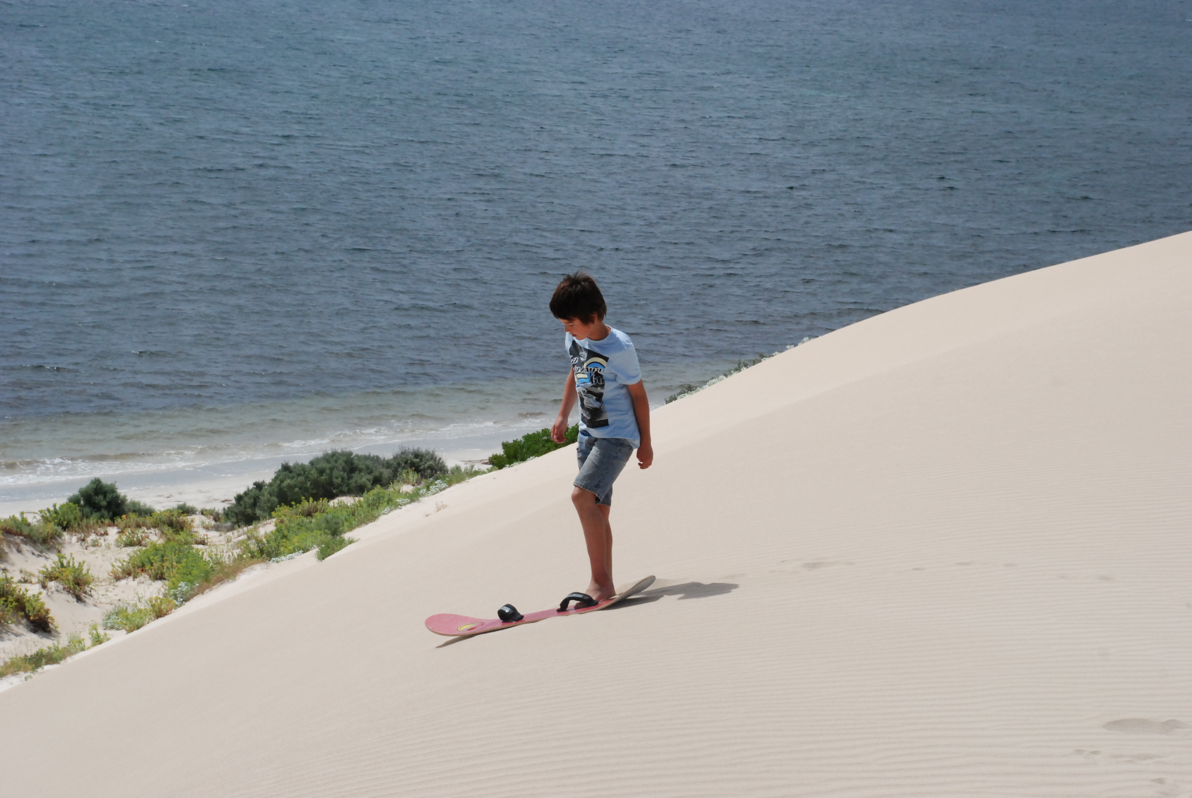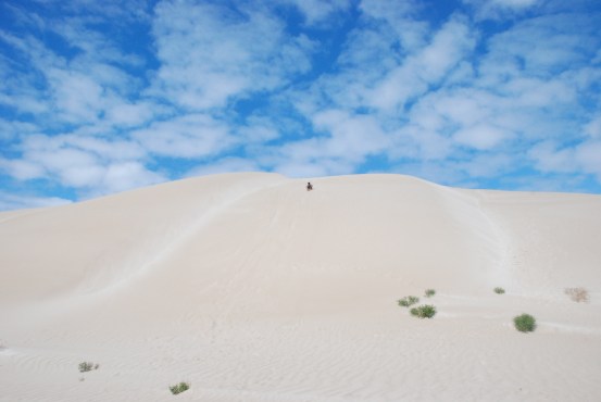 At the end of the Nullarbor we stopped for a day at Fowlers Bay. We saw that they had massive sand dunes so we hired boards and slid down them. My first shot was flabbergasting and for a moment everybody thought I was going to crash, but I succeeded! (but nobody was sucking seeds – so that was a little bit complicated!)