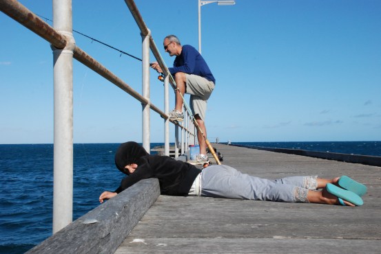 Daddy and I discovered that there was a jetty and we walked  down to do some fishing. Daddy caught a big fish and threw it back without knowing that it was a leatherjacket and when he came back to  the camper he was bitterly dissapointed.