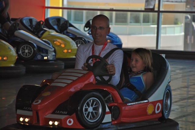 The bumper cars were epic fun. These were ones were they didn’t have to have really tall rods stretching up to the roof and it was only us in the ring. I went for an F1 Ferrari team.