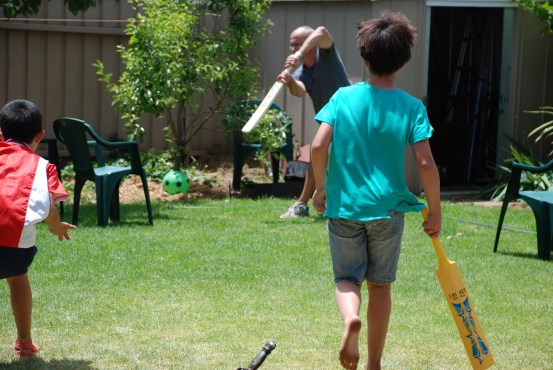 The next day we visited our second cousins: Matthew age 9, Zoe age 6 and Amy age 4 and their parents Wendy and Geoff. We played cricket and handball with them.