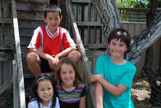 Me, Mathew, Amy and El. Zoe is above Mathew in the cubbyhouse.