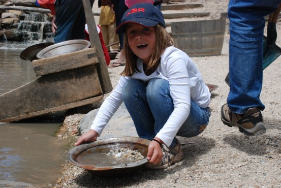 So down to Business, the type of business with flaky bits of gold in it, GOLD PANNING …..Gasp!!! The “pans” were these metal tins that you filled up with the stuff at the bottom and scraped all the rocks off. At the bottom you might find gold.
