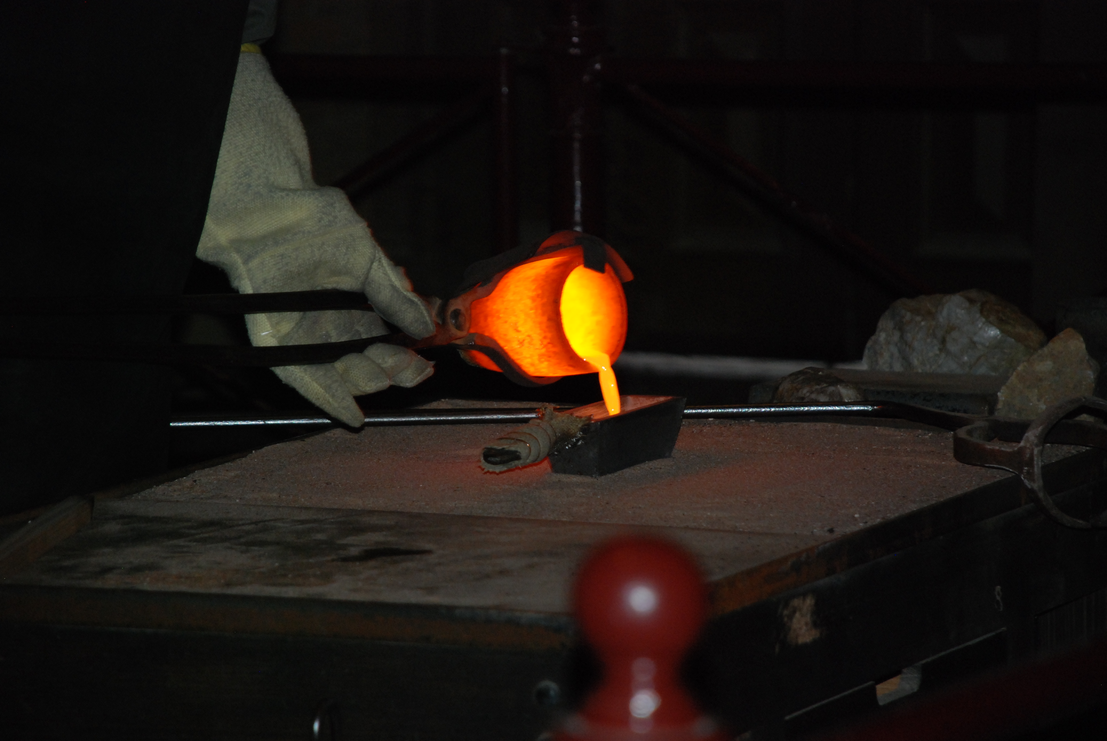 Gold pouring. The art of pouring melted gold into an ingot. A bit like what you do in Minecraft. The liquid is pure gold. Literally. It comes out of the jug glowing and very pretty. Gold melts at 1064°celsius and when touched with a stick, the ingot burst into flames.