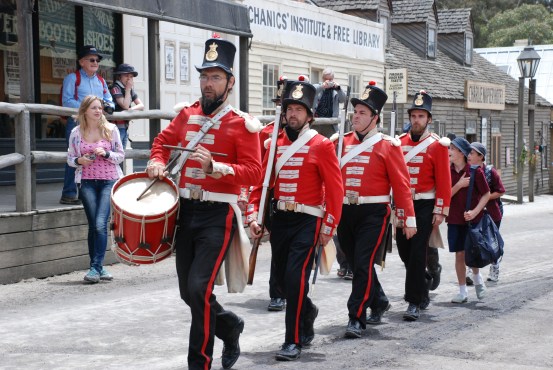The red-coats, who were the British soldiers, came marching down the main street and made a speech about the war that was going on at the time. They said stuff about winning and how if you were the with Germans you will FAIL. They fired a round of shots and then posed for pics with everybody.