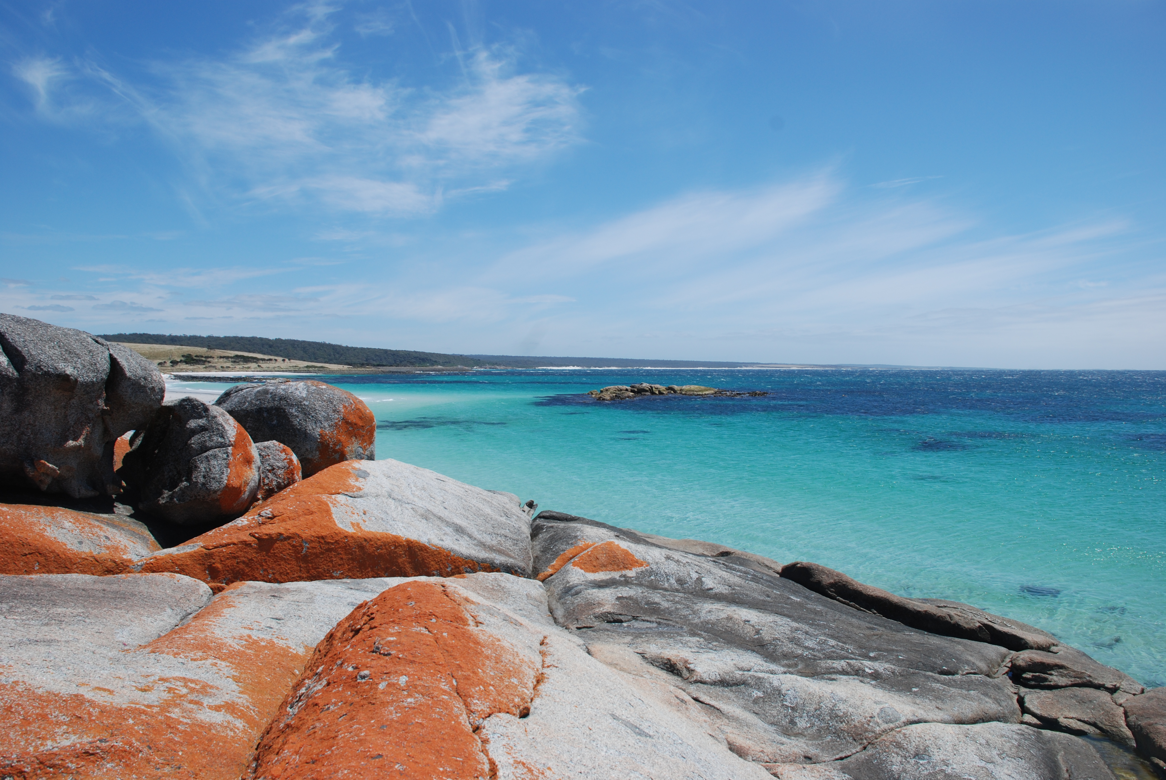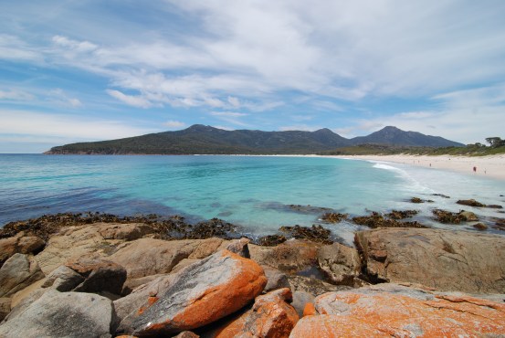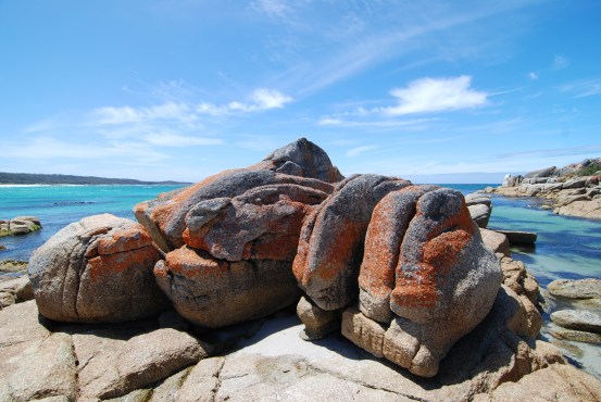 Amongst the preparations for Christmas, we had time to fit in a little sightseeing – incredible really, considering what our life is usually like at this time of year. To the north was the Bay of Fires. The sand stretched out past orange, lichen-covered rocks to the blue sea beyond.