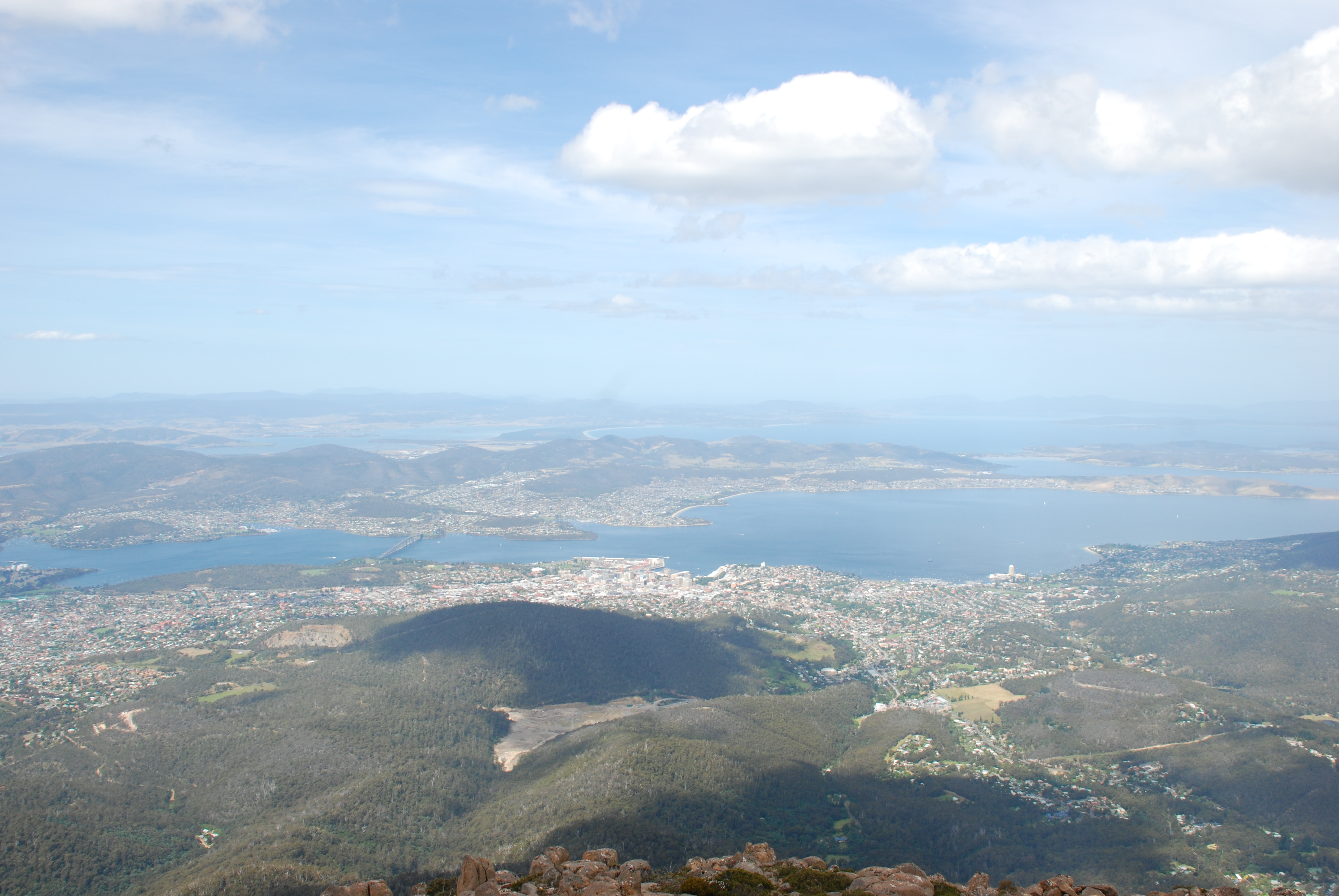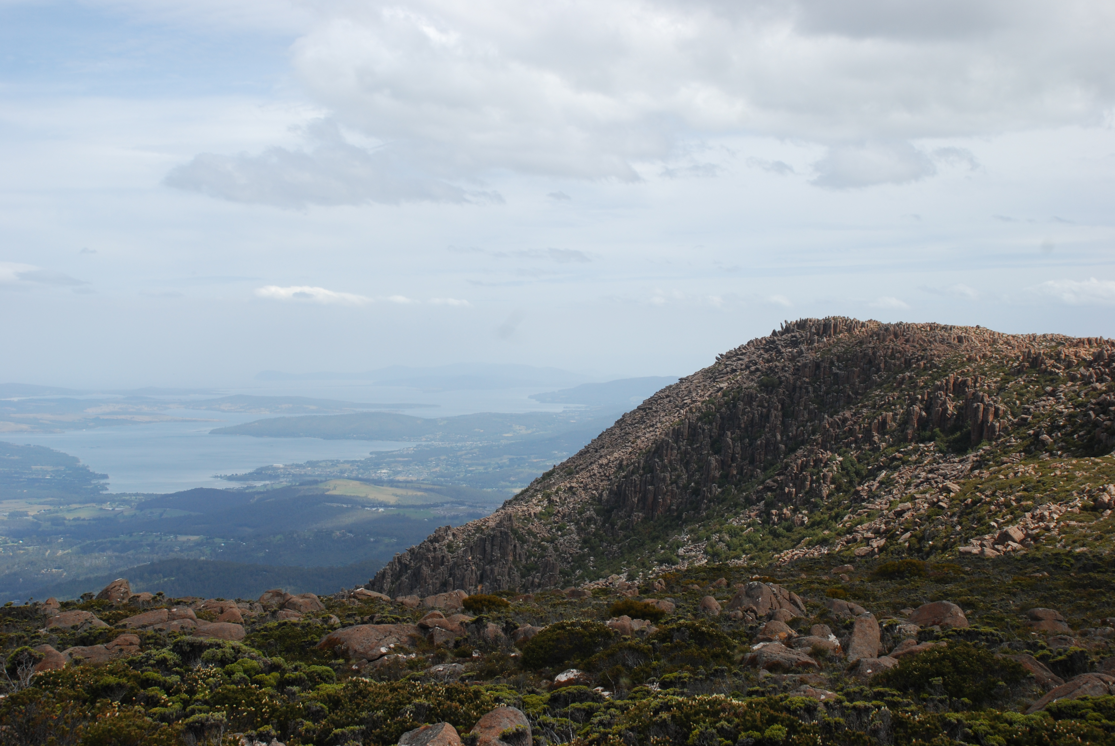 Luckily for us we had a clear bright day and with vain hopes of watching some yachts from afar come up Storm Bay and into the Derwent we checked out the views, climbed over rocks and marvelled at how far we could see. No boats though.
