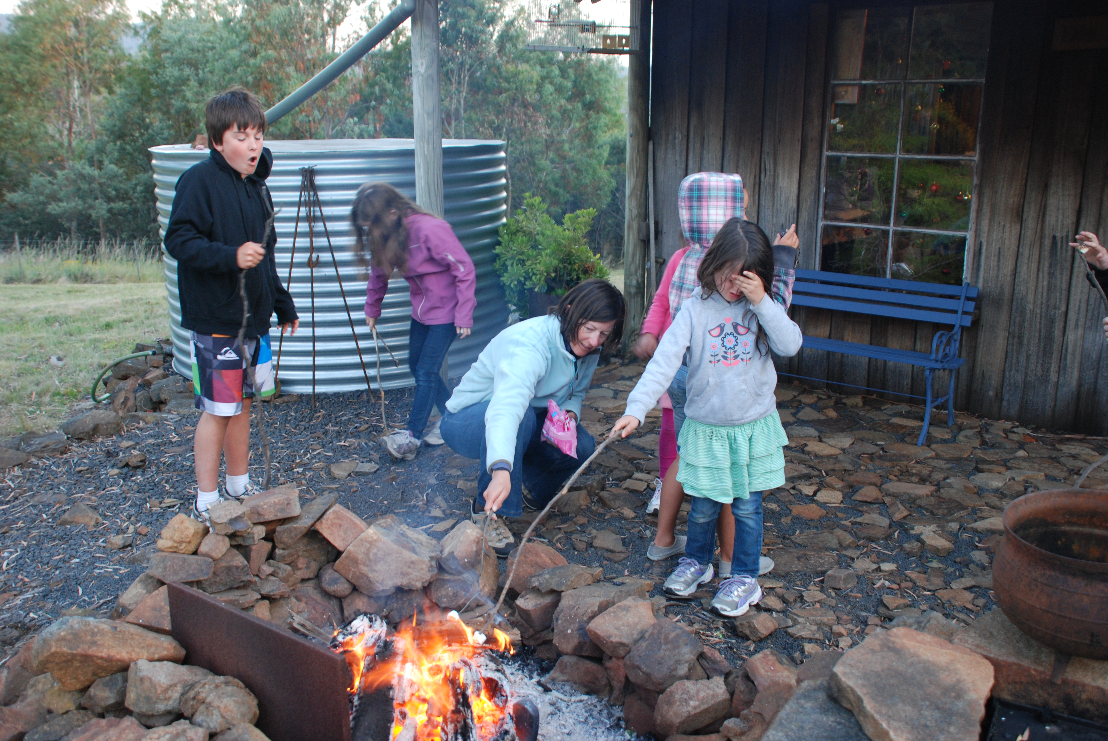 We built fires, enjoyed their warmth, played around the property, fed the goats and played with the resident dog.