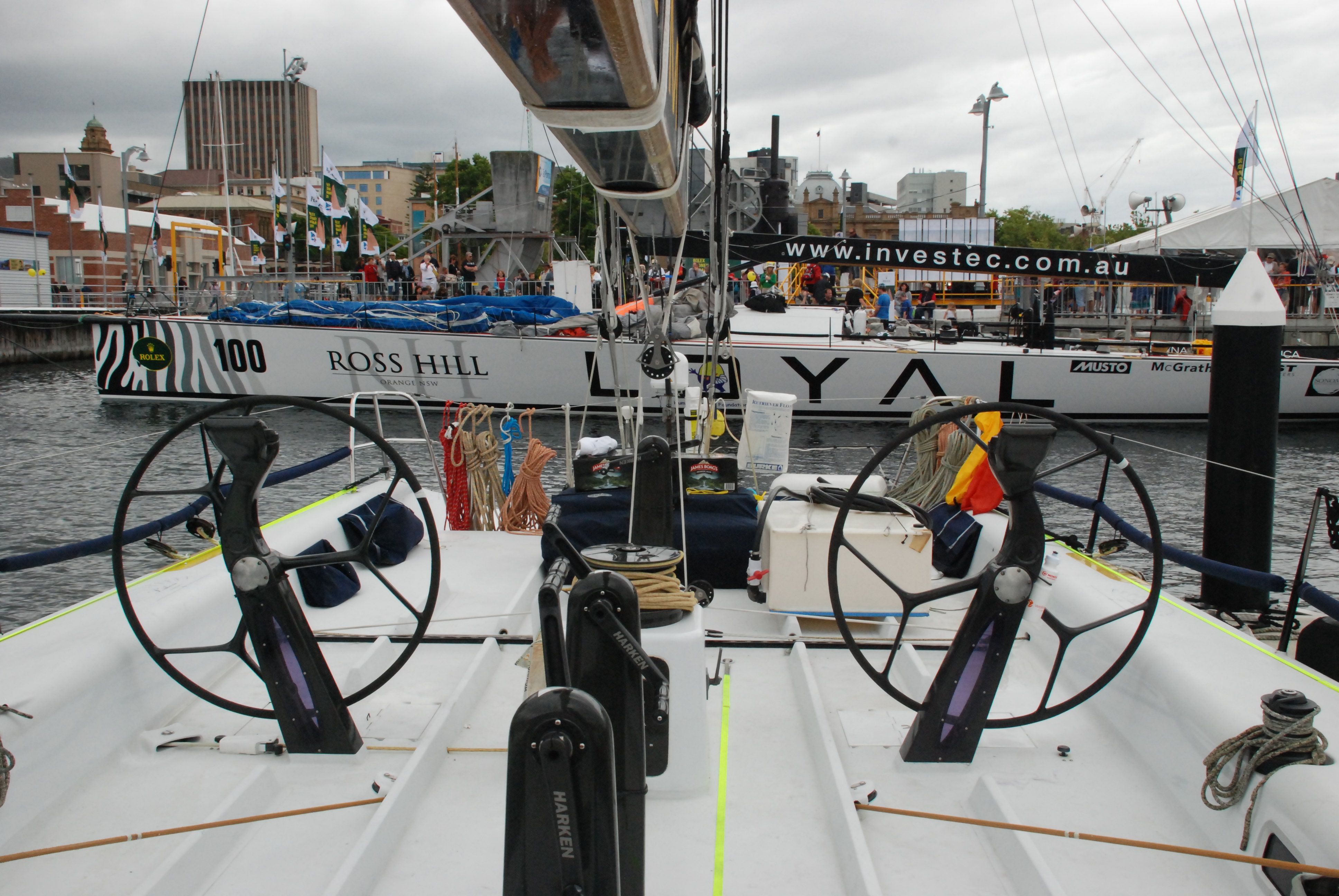 We awoke to the news that the line honours winner, Loyal, was subject to a protest for an alleged breach of the “outside assistance” rule. Luckily for us the hearing was scheduled to be heard that morning as we headed back down to the docks to see some boats come in.