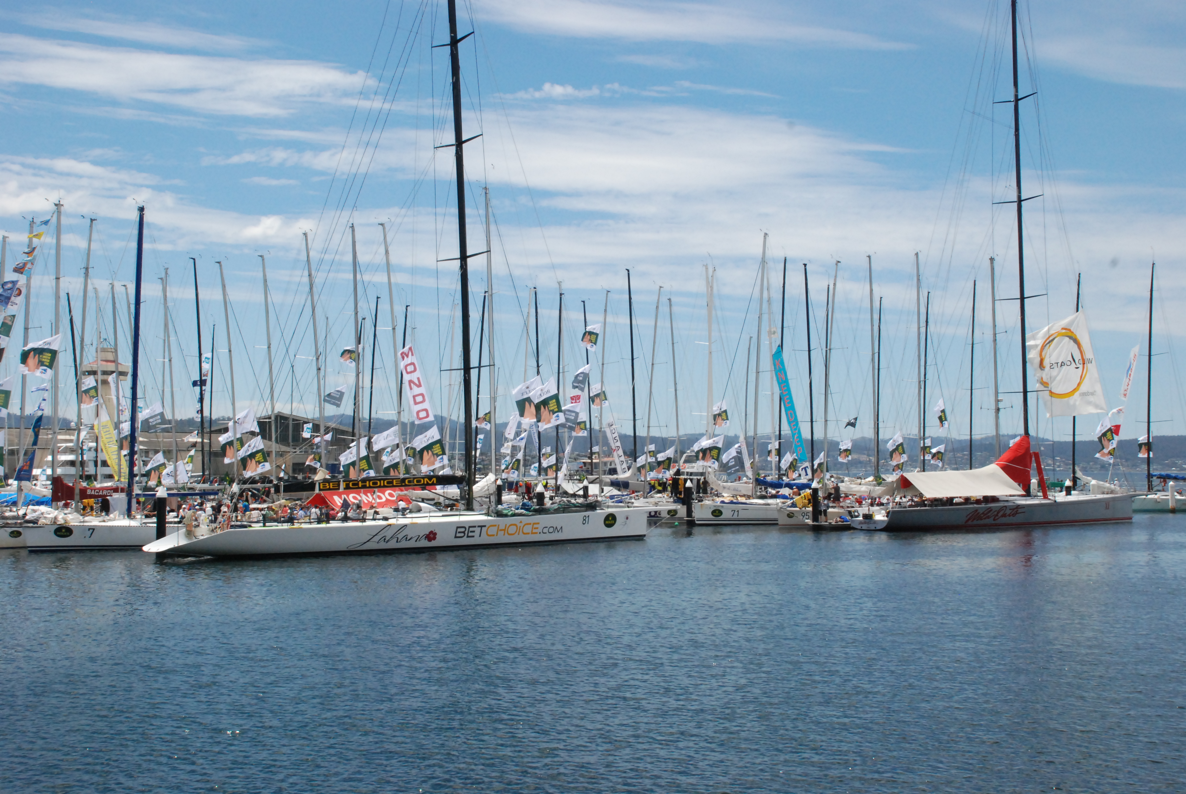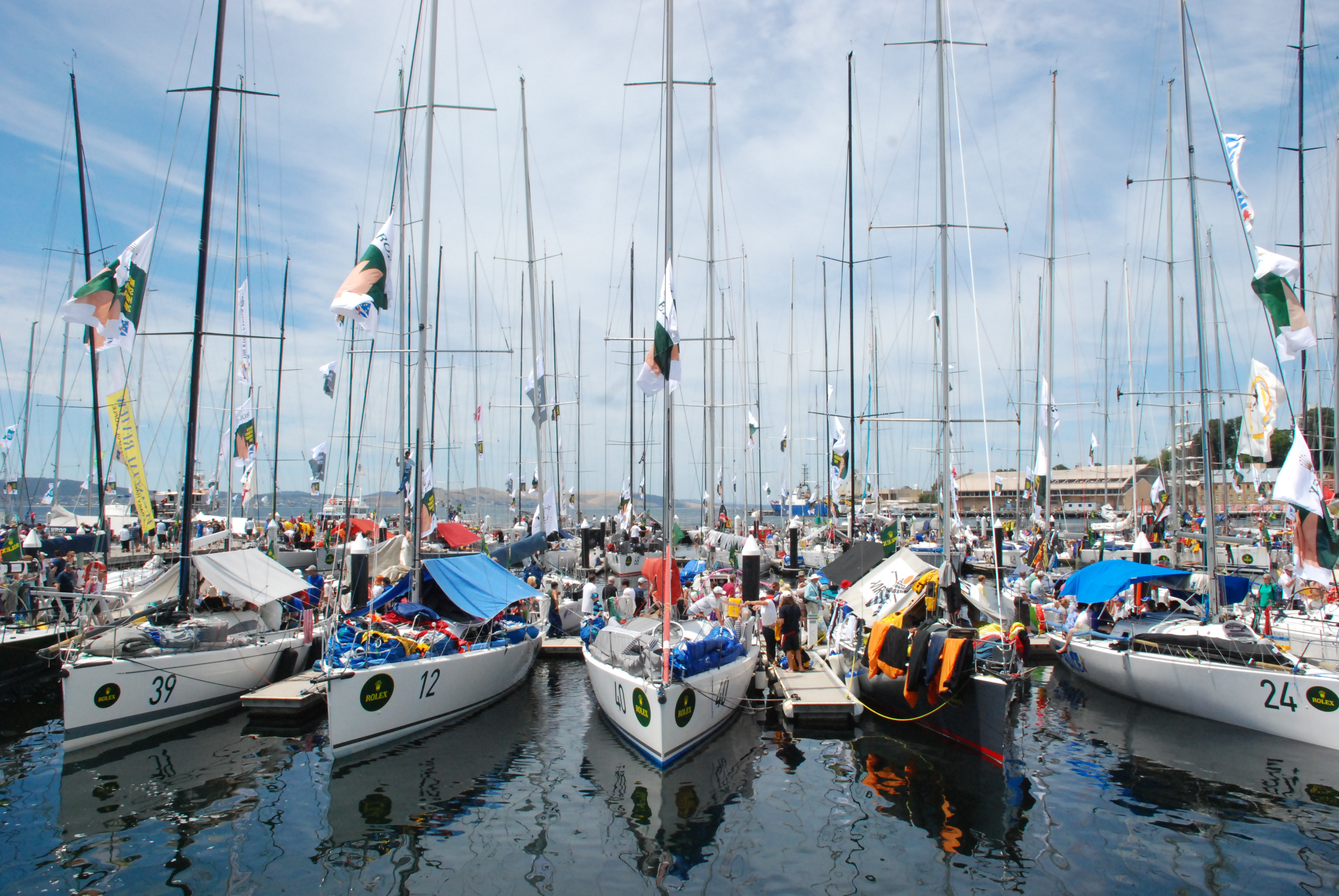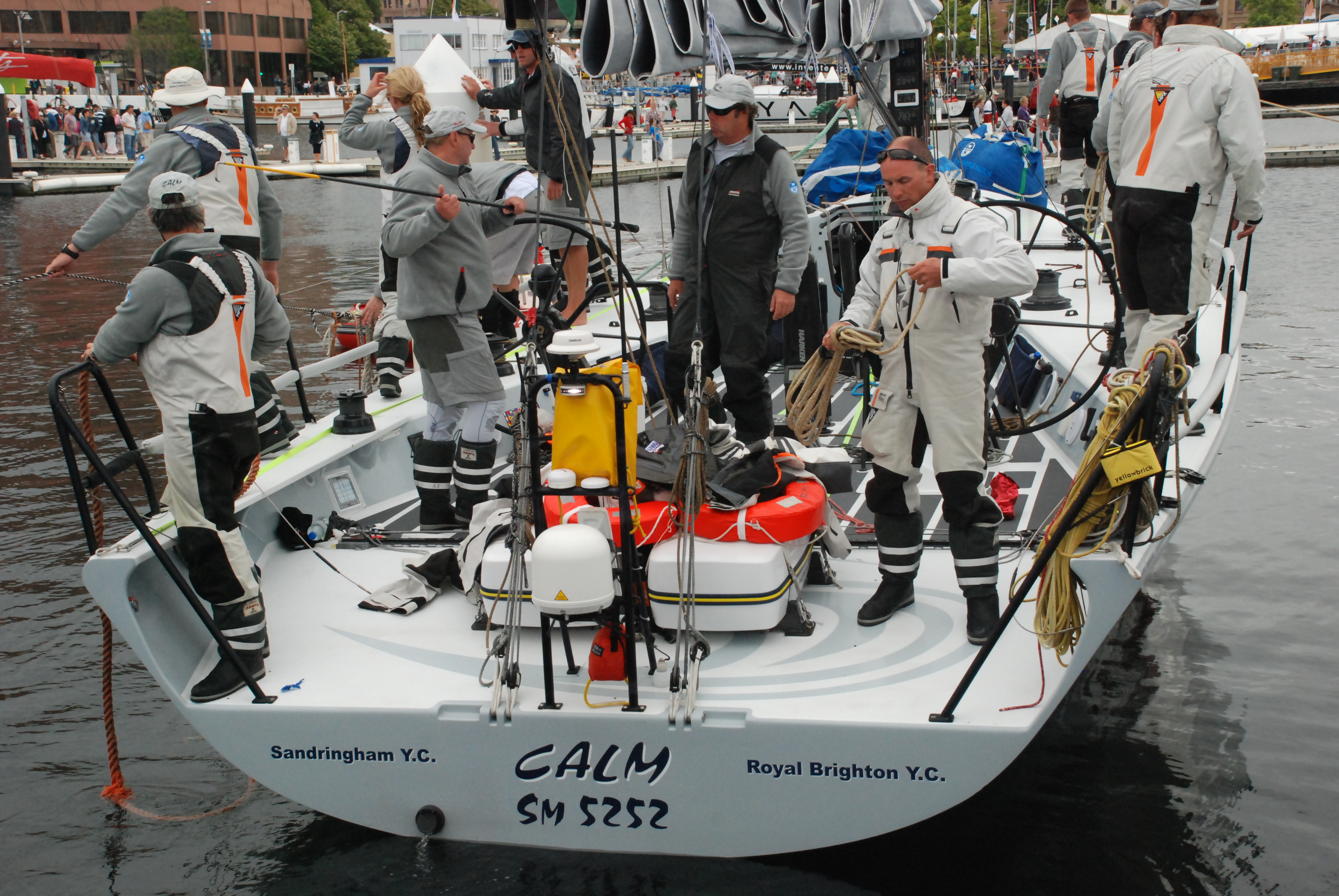 So with the result still up for grabs and only a few of the big name front runners finished, we wandered around Constitution Dock and got up close and personal with the pure racing machines Loyal, Wild Oats XI, Lahana, Ichi Ban and others. Fortunately we saw three boats cross the line in quick succession around midday including Ragamuffin. Cheers went up and we all celebrated as the word came through to the crew still onboard Loyal, that the protest was dismissed and they were declared the winners. So, in the end, we were there when the race was won!