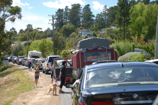 Look at this queue of cars. You must be wondering why we are taking a photo of this queue. It is kind of important because we were getting on a ferry to Bruny Island and this was the line.