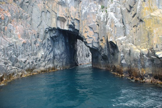 When you look at this photo, you might think the cliffs are amazing, but also look at the small rock island. It looks like a king with a dog, doesn’t it? Our boat went through the gap between the cliffs and the king!
